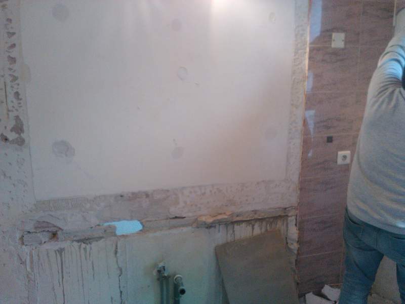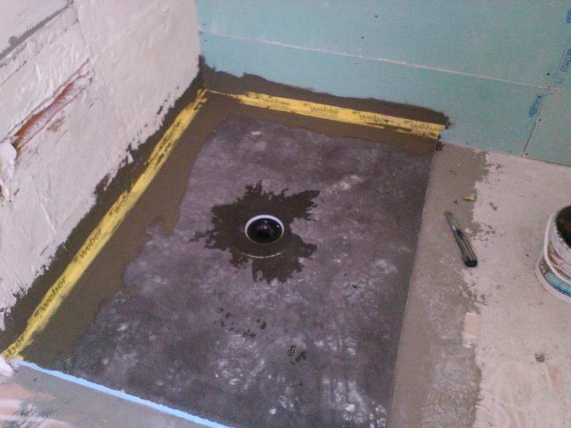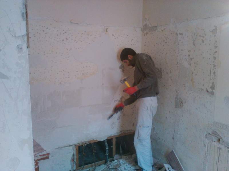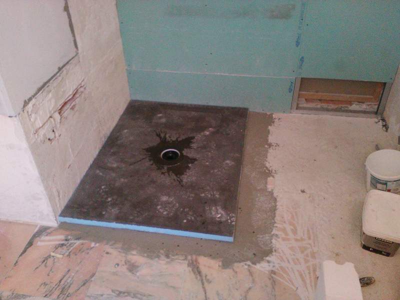 Après le dépose et l'évacuation de l'ancienne baignoire pose d'un receveur de douche à carreler pour réaliser un douche à l'italienne.