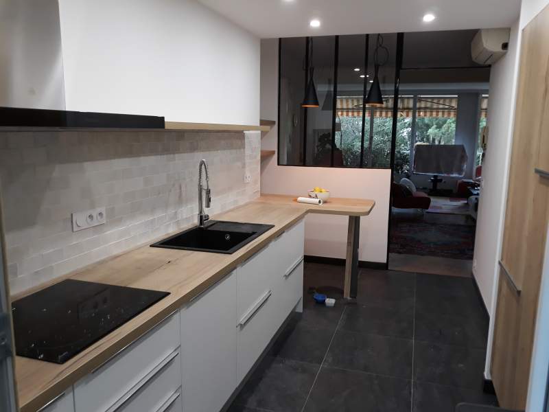 Une manière efficace et très esthétique de délimiter la cuisine sans pour autant la priver de lumière, ni enfermer le cuisinier loin de ses convives.
