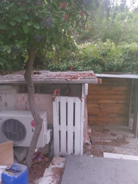 Démolition de toit existant et réalisation d'une arase pour soulever la hauteur du plafond et agrandir l'abri.